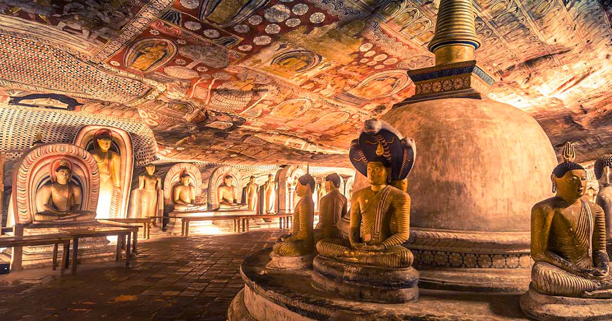 The Great Cave Temple of Dambulla is 100 to 150 meters above the road in the southern part of the village of Dambulla. The gigantic rock towering more than 160 m above the surrounding area is 1.5 km. These caves were the refuge of King Walagamba when he was exiled for 14 years. On his return to the throne in the 1st century BC, King Walagamba had a magnificent rock temple built in Dambulla. Dambulla too has been designated as a World Heritage site. The caves feature a mixture of religious and worldly paintings and sculptures. Several reclining Buddha statues and a 15 m long sculpture of the dying Buddha. The famous Dambulla frescoes on the walls and ceiling dates back to the 15th-18th Centuries.