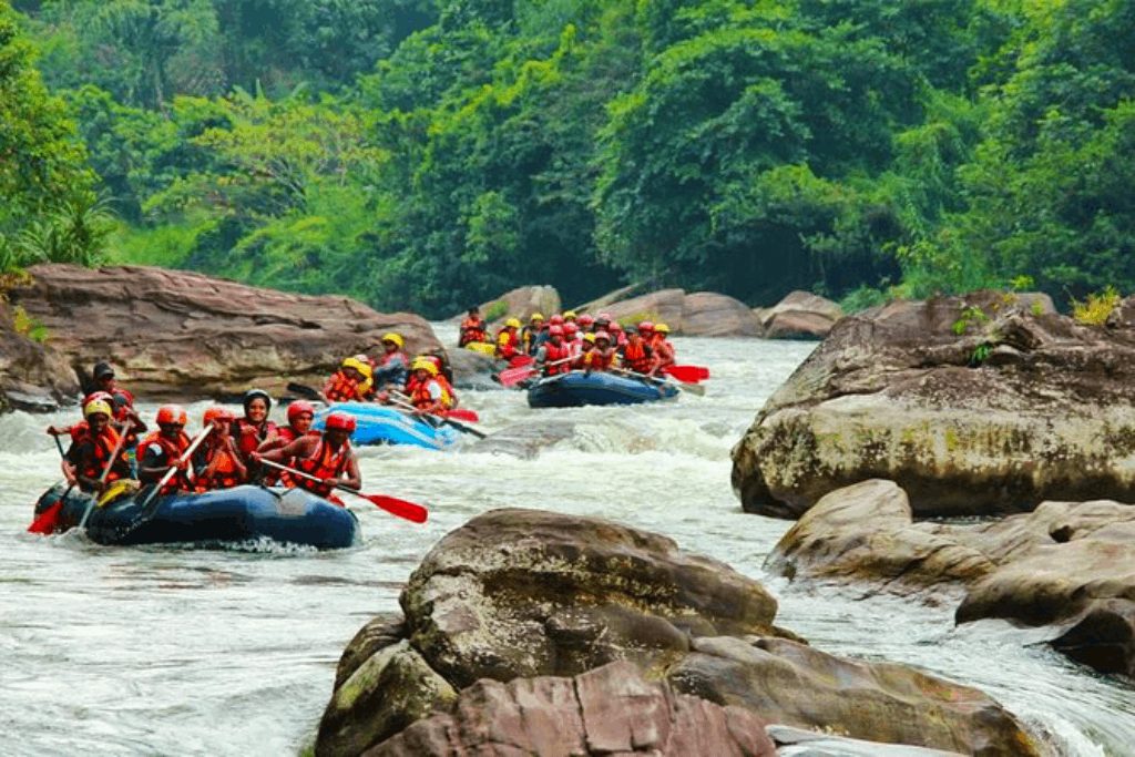 Experience an exciting rafting adventure in a jungle paradise. White Water Rafting is a challenging recreational activity and an exhilarating water sport. Yet contrary to the public belief, White Water Rafting is not a sport that demands great physical strength. Experience White Water Rafting in the picturesque Kelani River, covering 5 major rapids and 4 minor rapids. This activity is for anyone above the age of 10 years with safety gear, modern rafts, and a comprehensive safety briefing will be given by our white water rafting instructors beforehand. The distance covered is around 5 km. The river and its surrounding will make you feel enchanted, with a memorable Experience during your White-water Rafting Tour in Kitulagala. The best time to enjoy White Water Rafting at Kitulgala is the period between May to December. During periods of heavy rain, the river could turn out to be very volatile and White water Rafting becomes very unsafe. The adventure operators on site would advise all water sports enthusiasts on the matter. However, water levels could drop surprisingly fast, turning the river to its regular state during the rainy season as well.